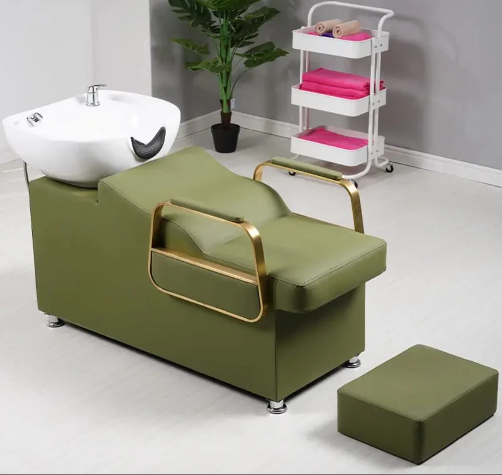 This shampoo chair is stylishly manufactured in an elegant Green and Black color combination, providing a luxurious and modern appeal that suits high-end salon interiors. The rotatable feature enhances usability and helps stylists manage positioning smoothly during hair wash procedures, improving workflow and convenience. Built as a Shampoo Chair without Footrest, it offers a more compact and ergonomic design ideal for smart space management.